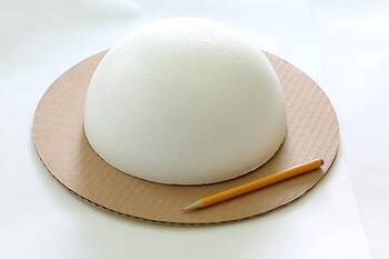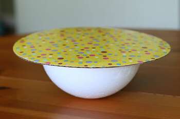 2. Setelah menelusuri setengah bola, keluarkan dari lingkaran kardus. Tambahkan lem di sekitar tepi atas bola dan kemudian tempelkan ke lingkaran kardus untuk menyejajarkannya dengan sempurna di dalam lingkaran Anda yang ditelusuri. Jika Anda ingin segera menggunakannya, Anda bisa memasangnya dengan titik-titik lem atau pita. Jika tidak, Anda bisa menggunakan lem cair dan tunggu sampai kering.
