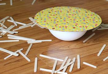 6. Bisakah Anda membuat desain yang akan menyeimbangkan? Pegang platform dengan satu tangan agar tidak bergerak. Gunakan tangan Anda yang bebas untuk membuat desain dengan stik es loli di platform. Perkirakan jika desain yang Anda buat akan seimbang. Lalu, lepaskan dan lihat apa yang terjadi!