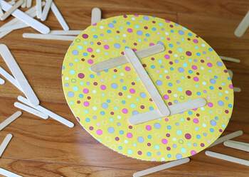 4. Gunakan stik es loli untuk membuat bentuk. Cara yang menyenangkan untuk melatih bentuk adalah dengan membuatnya dengan stik es loli, dan itu bahkan lebih menyenangkan saat mencoba membuatnya di platform yang goyah!